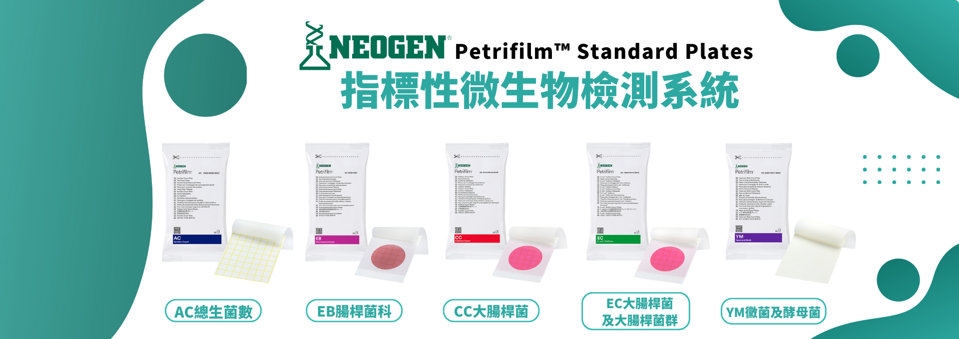 操作時僅需將樣本或稀釋液滴加於檢驗片表面,再使用展開器均勻攤開即可培養與判讀。